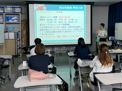 模擬授業後に、一條先生より入試説明を行い、在校生との学生生活の実態を紹介する懇談会を実施いたしました。