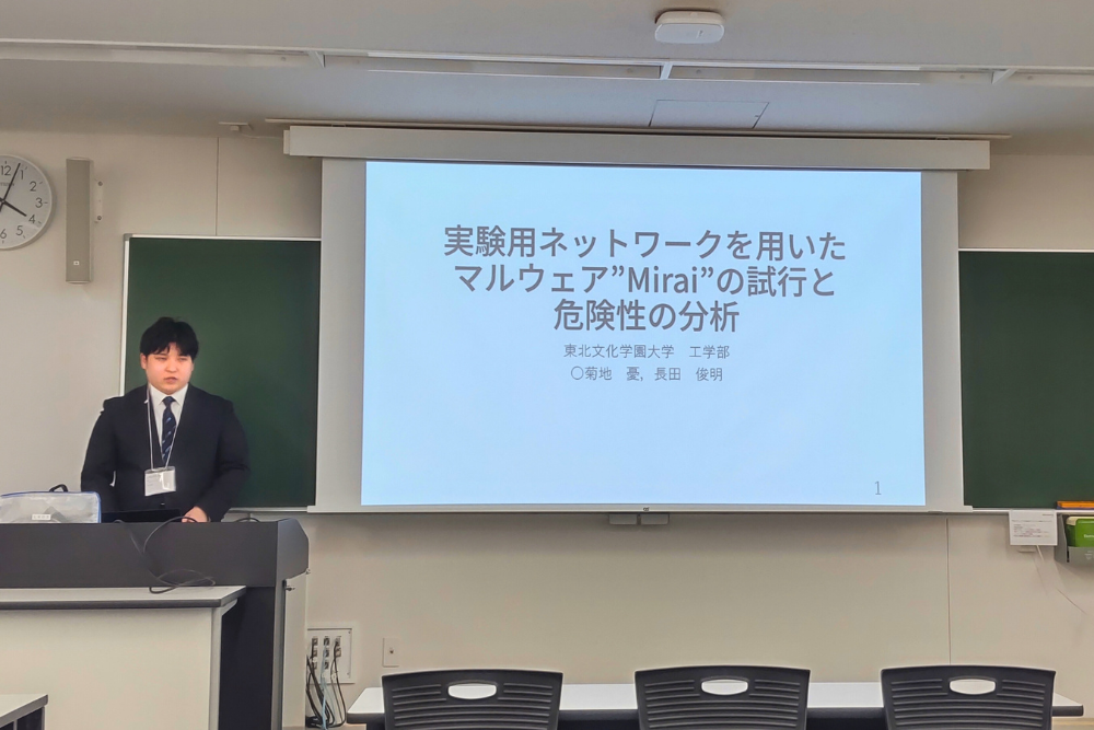 発表テーマ:実験用ネットワークを用いたマルウェア"Mirai"の試行と危険性の分析