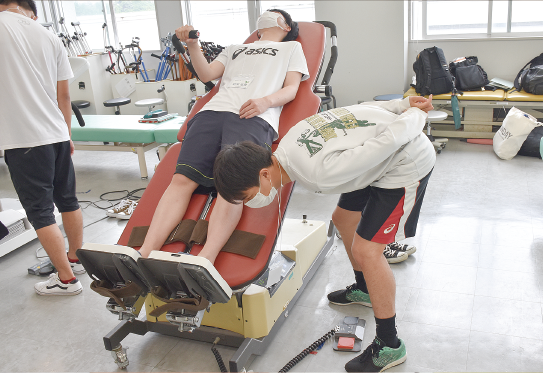 本専攻の「育成塾」は理学療法士に重要な基礎知識や考え方に広くふれます。例えば骨学や筋学、神経学などは、高校生にとって初めての学問分野ですが、このような先取り学習を行うことで、入学後の自信や充実感につながるはずです。