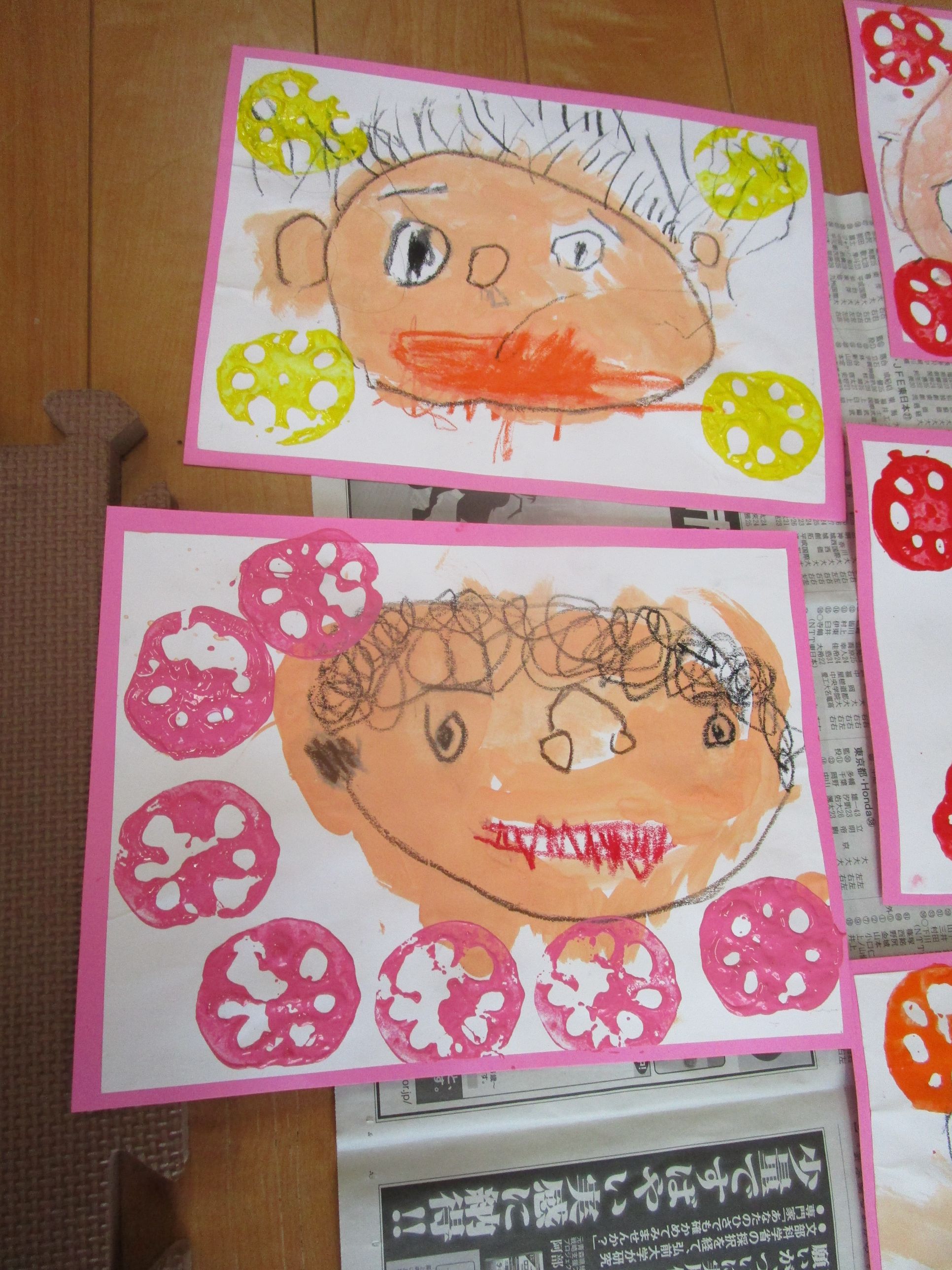 似顔絵とレンコンスタンプで可愛い作品が出来ました😊