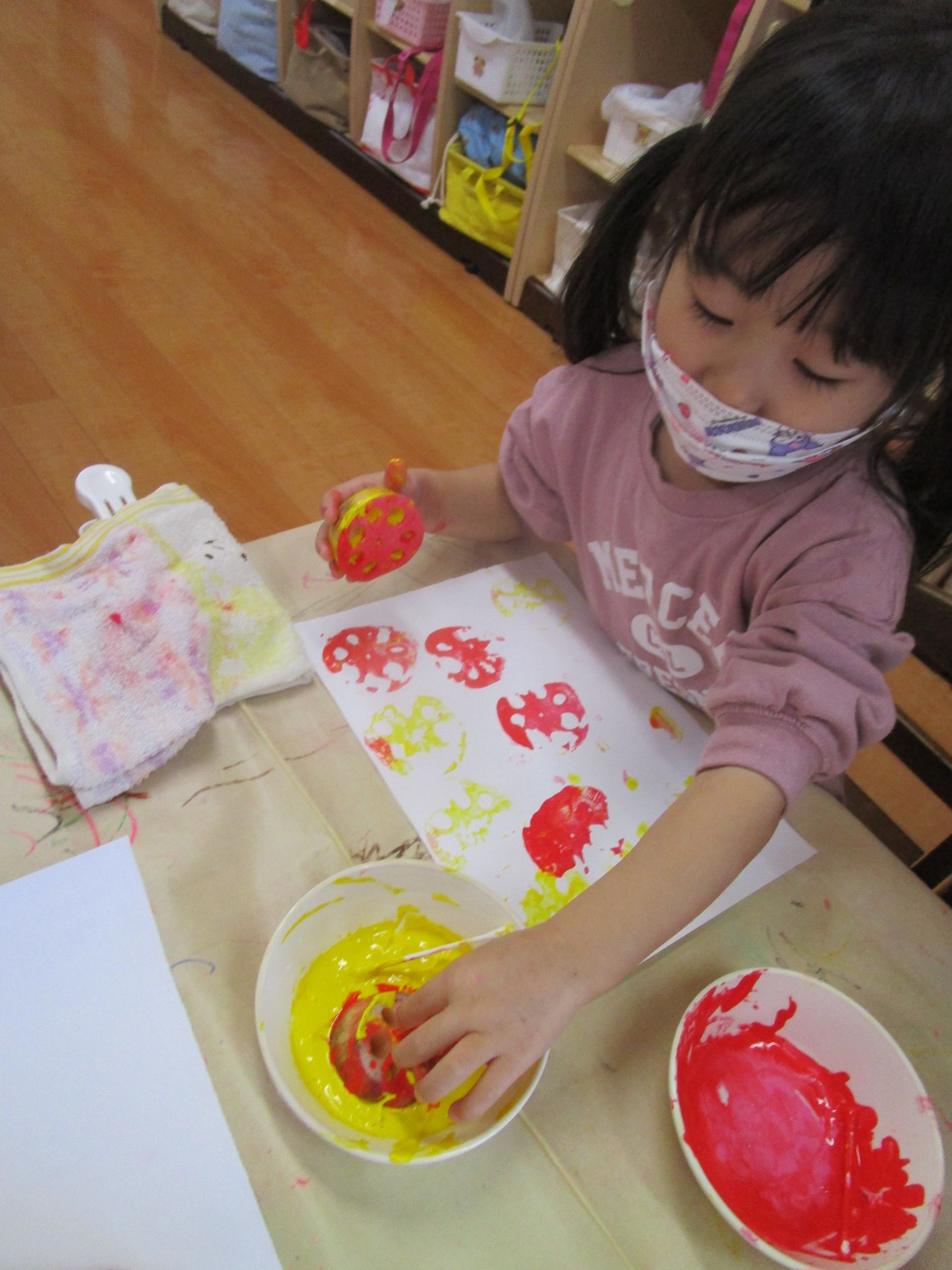 レンコンスタンプをしたよ!(2歳児)