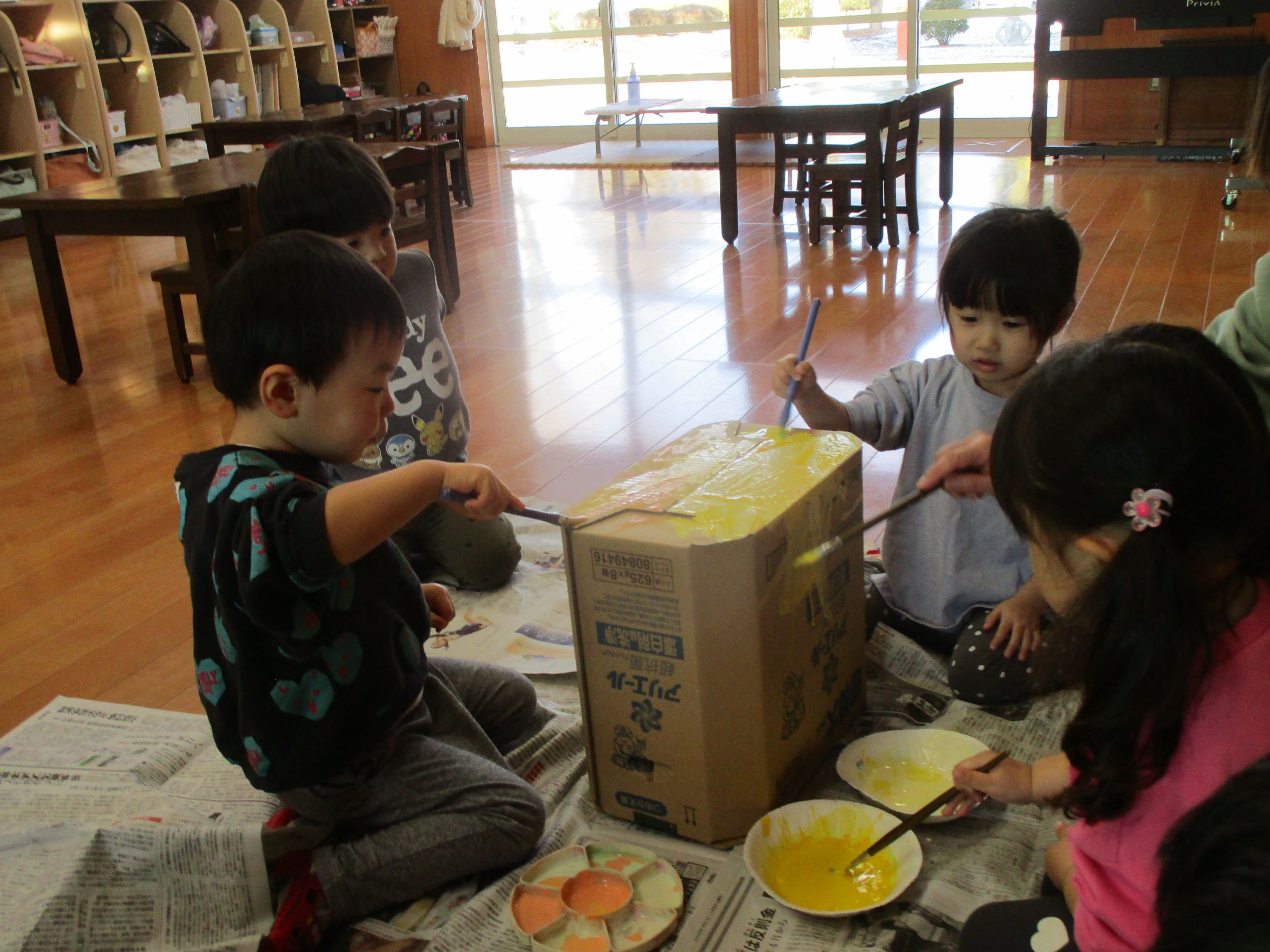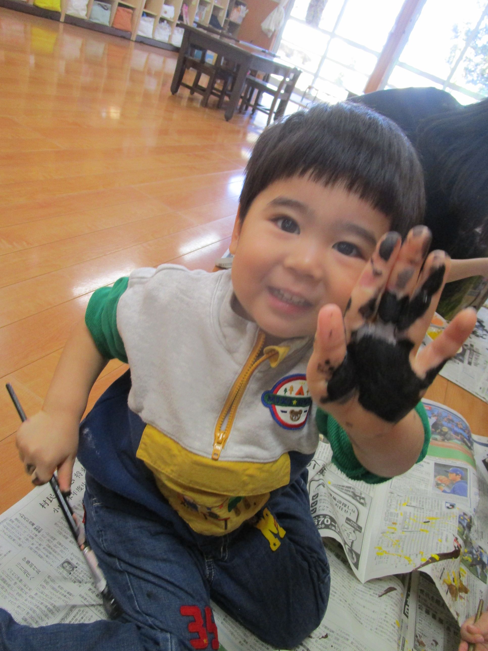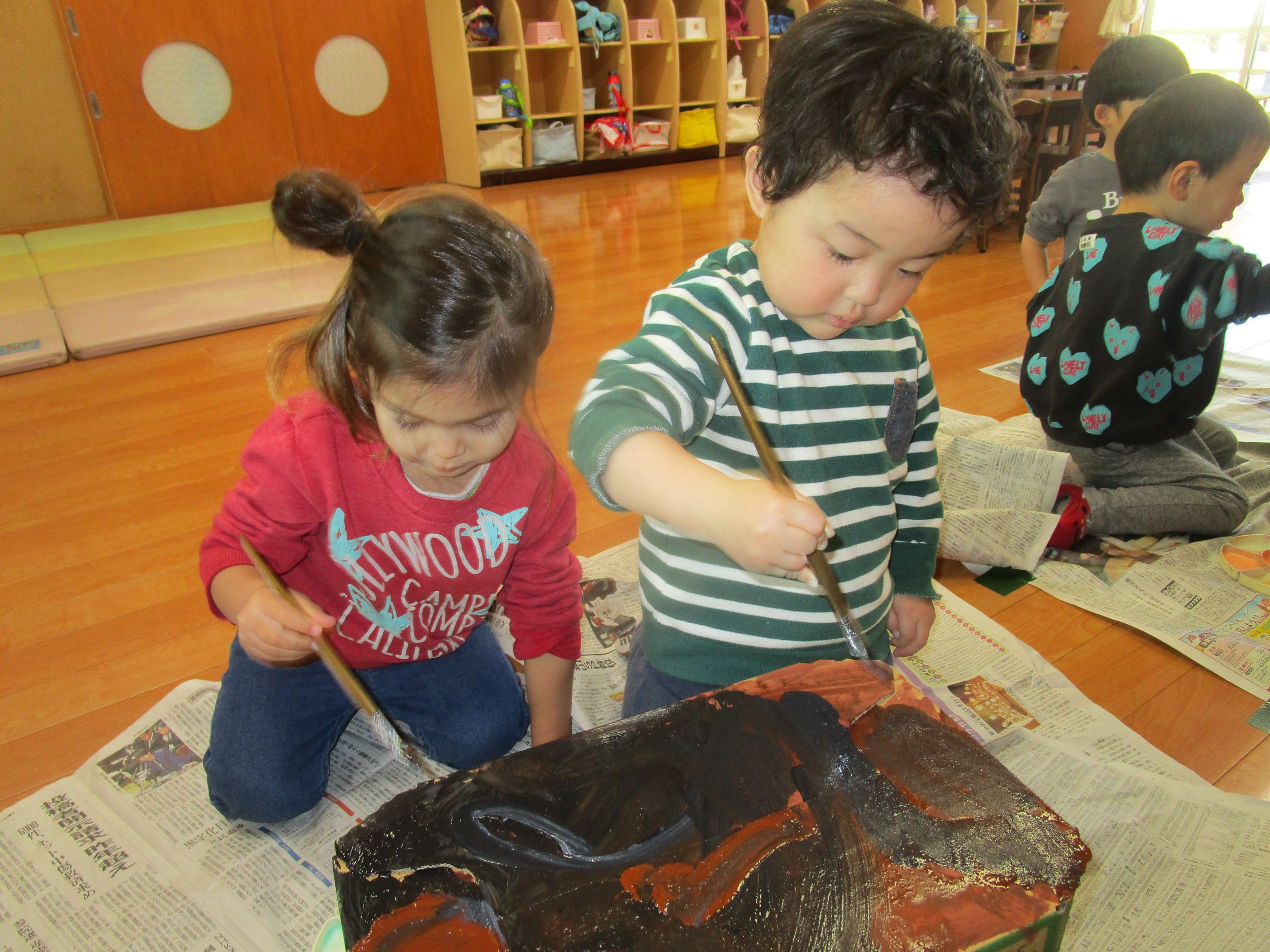 みんな茶色や黒色、黄色など好きな絵の具の色で真剣に色塗りをしました😊