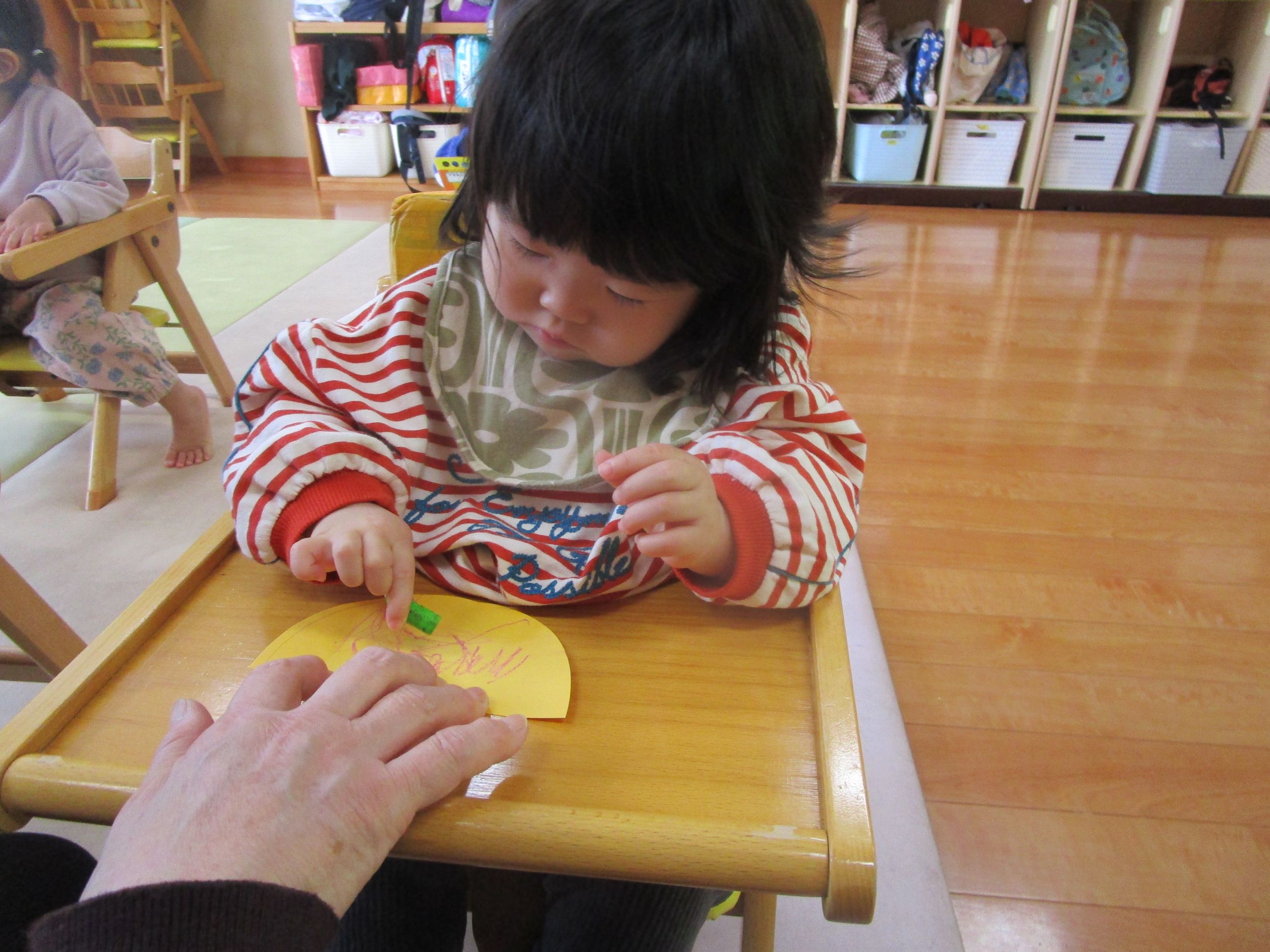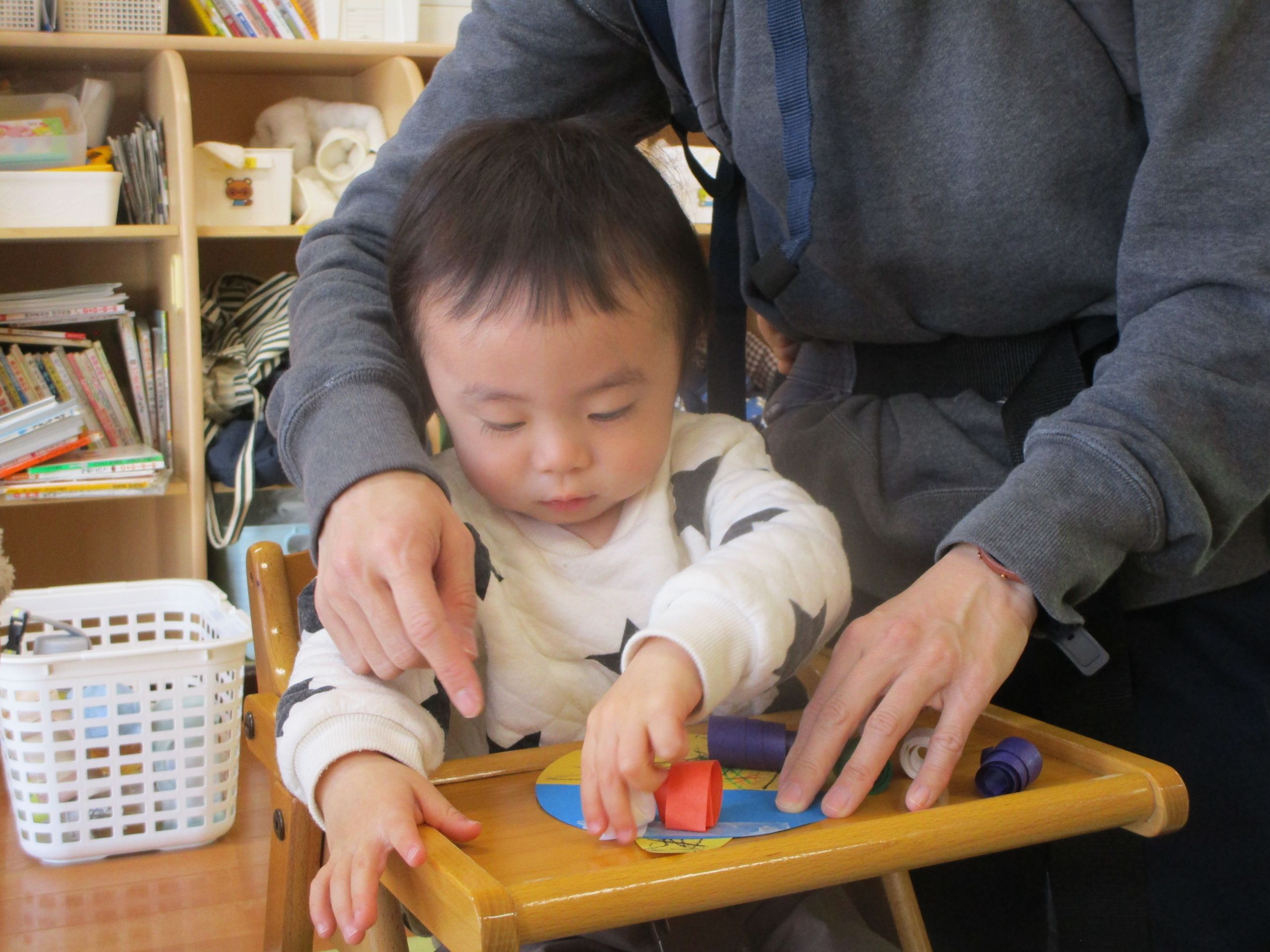 低月齢の子は、先生と一緒に髪の毛を付けました😊