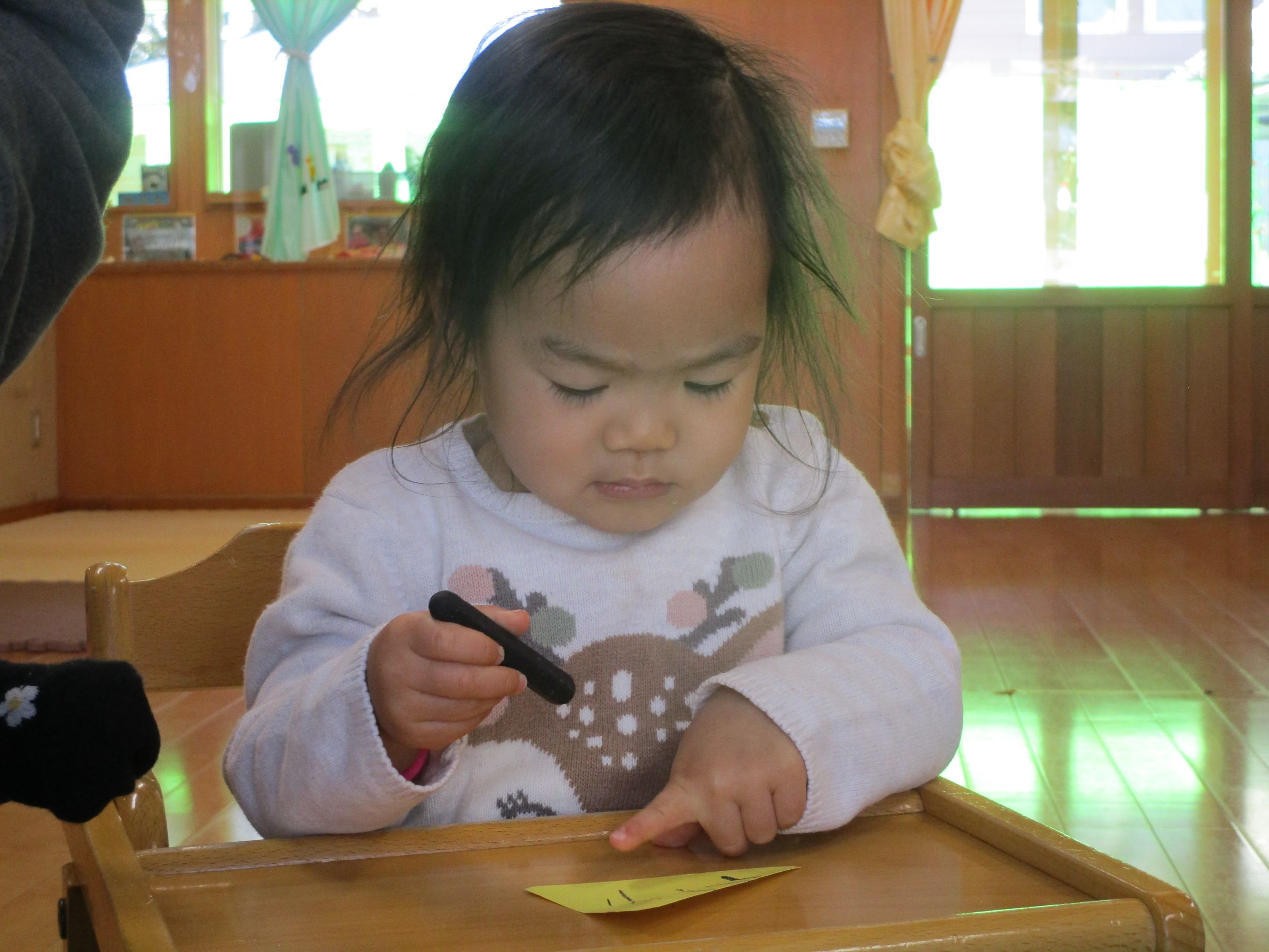 高月齢の子は、あえて体にパンツを貼った状態で模様を描いてみてもらいましたが、