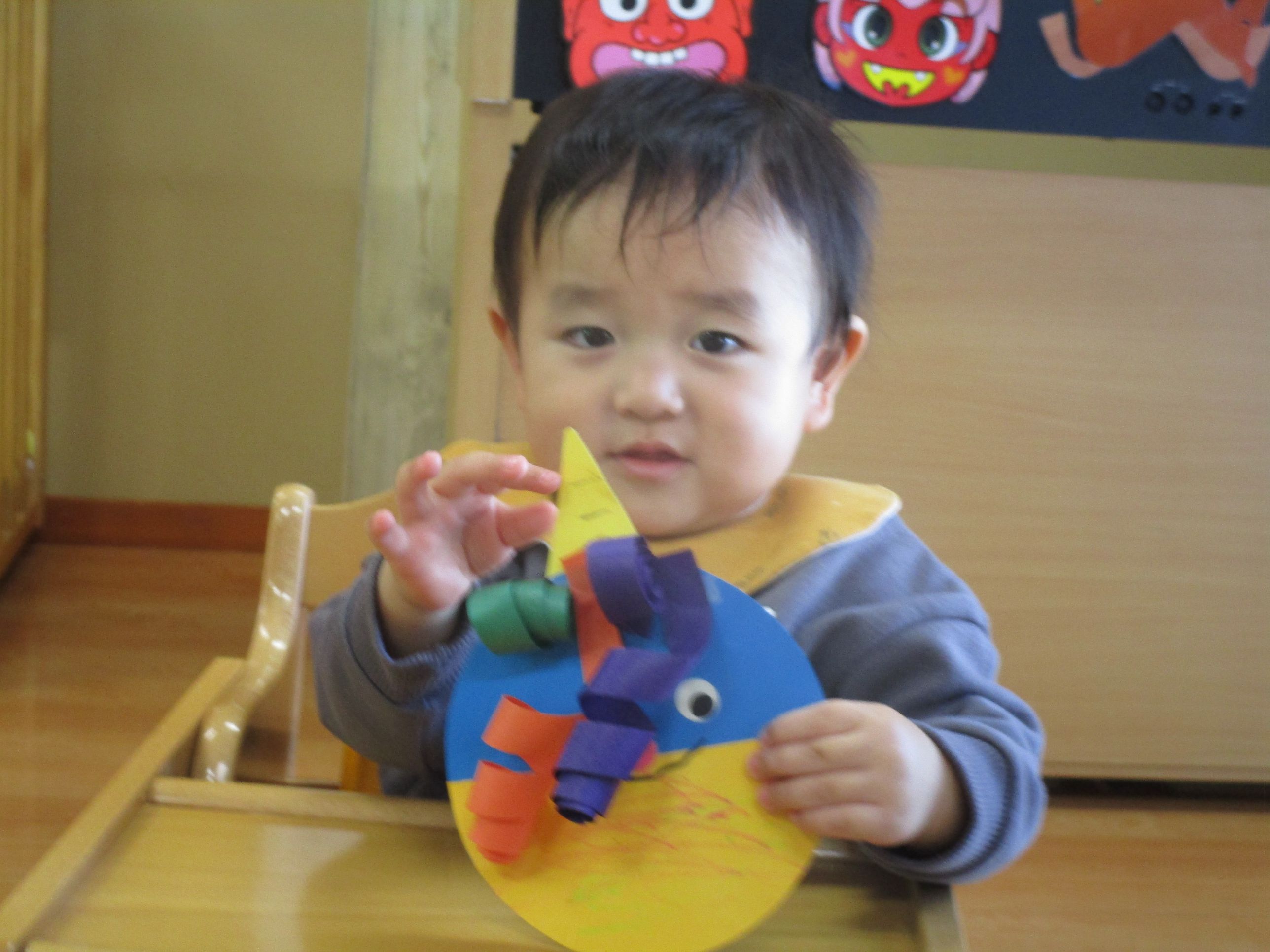 豆まき当日は、カラー帽子にお面を貼って鬼と戦いました🔥