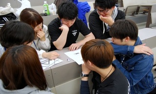 研修会は、スタートこそ皆、緊張した面持ちで参加していましたが、レクリエーション、グループワーク等、プログラムが進行するにつれ、先輩たちのリードで徐々に緊張がほぐれていきました。後半は学生リーダー会執行部・各班(企画班、広報班、製作班)の活動内容の紹介もあり、先輩リーダーの説明を1年生は真剣な表情で聞いていました。研修中は参加者全員が終始笑顔で、研修会を企画した先輩リーダーも、研修会が無事終了し、一様に安堵の表情をみせていました。