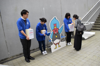 保護者の方々にも学生リーダー会の活動を知っていただこうと、リーダー会の活動紹介動画をご覧いただき、北海道の地震で被災された方々への募金活動を行いました。