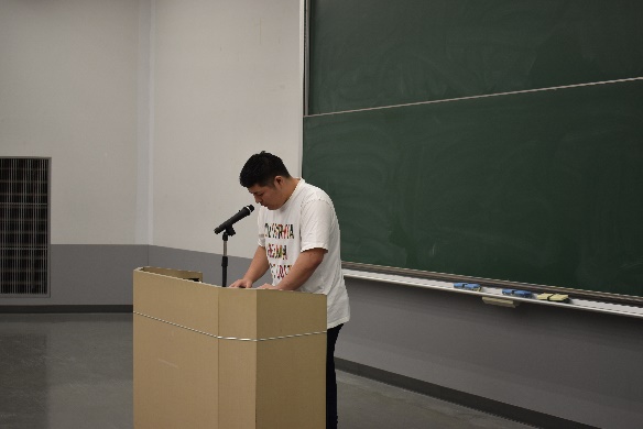 学生会代表者会議の議長、課外活動委員会の委員長、文化学園祭実行委員会の委員長などそれぞれの代表を務める学生から、昨年度の事業報告がありました。