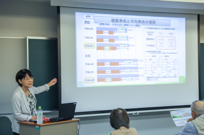 その後、医療福祉学部保健福祉学科 菅谷 洋子准教授の講座「認知症予防」が行われました。