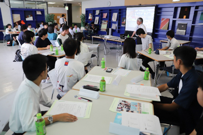 下の写真は、本学総合政策学部教員、学生とディスカッションしている様子です。