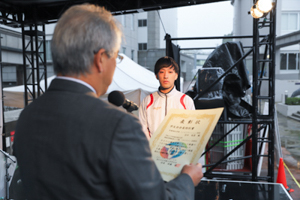 雨の中での表彰式となってしまいましたが、お二人はとても晴れやかな笑顔でした。今後の活躍も期待しています!
