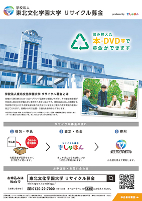 学校法人東北文化学園大学では、このたび、読み終えた本やDVD等、身近な物品を寄附できる「リサイクル募金」を開始しました。