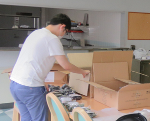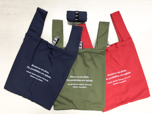 今回は、同窓会から頂いたエコバックの包装作業を行いました。