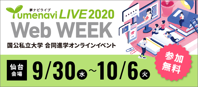 国公私立大学合同オンラインイベント「夢ナビライブ2020 Web WEEK 仙台会場」に本学が参加します。
