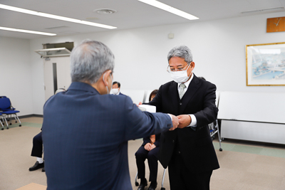 式では、各所属長立ち会いの下、理事長から定年退職者一人ひとりに辞令と記念品が手渡されました。