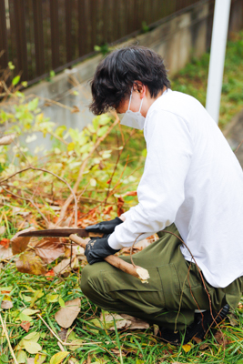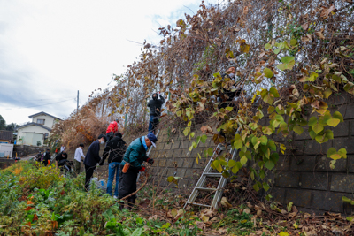 午前中のみと限定された時間での作業でしたが、ツタの除去作業およびゴミ出しを効率よく進め、時間内に想定よりも多くの面積を片付けることができました。