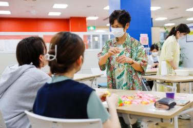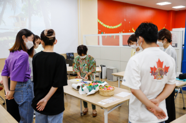 レイを楽しく作りながら、英会話・時に日本語を交えながら、優しくレクチャーしてくれます♪