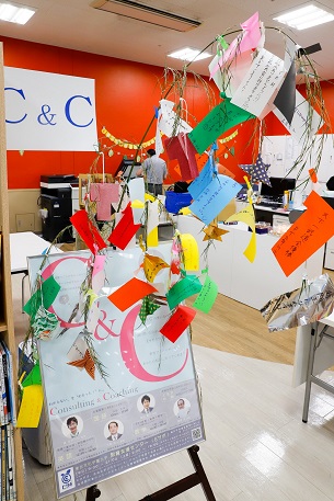 開始前からたくさんの方にEサポに集まって頂き、思い思いに短冊に願い事を書いてくださいました。