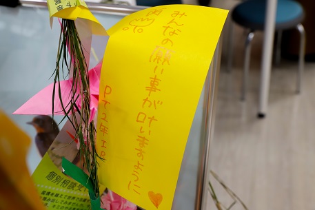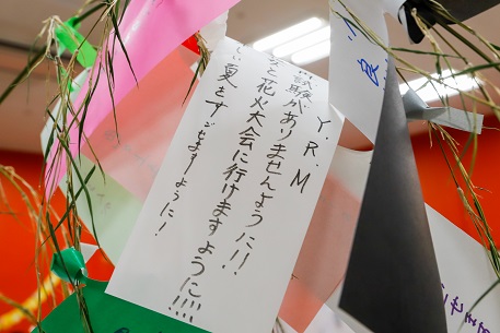 今回は七夕ということもあり、Eサポに七夕飾りや短冊をご用意いたしました。