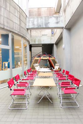 室内は飲み物はOKですが、食事はできないため、学生はEサポの外や食堂まで移動する必要がありました。