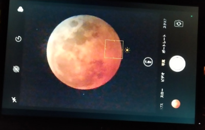 皆既食中の月(モニターより)