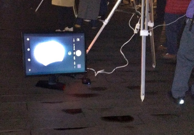 モニターの皆既食を写真に収める参加者