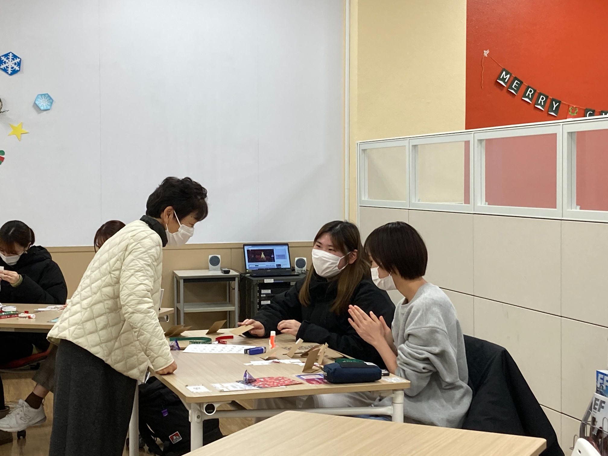 C&C英語講師のリアーン先生からアメリカのクリスマスの話を聞いて、アドベントカレンダー作り!!
