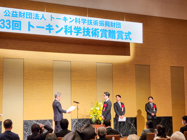 2023年3月14日(火)にウェスティンホテル仙台で行われた公益財団法人トーキン科学技術振興財団第33回(令和4年度)トーキン科学技術賞において、本学リハビリテーション学科 沼田 純希 助教が「歩行時の足関節における中枢神経の運動制御戦略に関する研究」についてトーキン財団奨励賞を受賞しました。