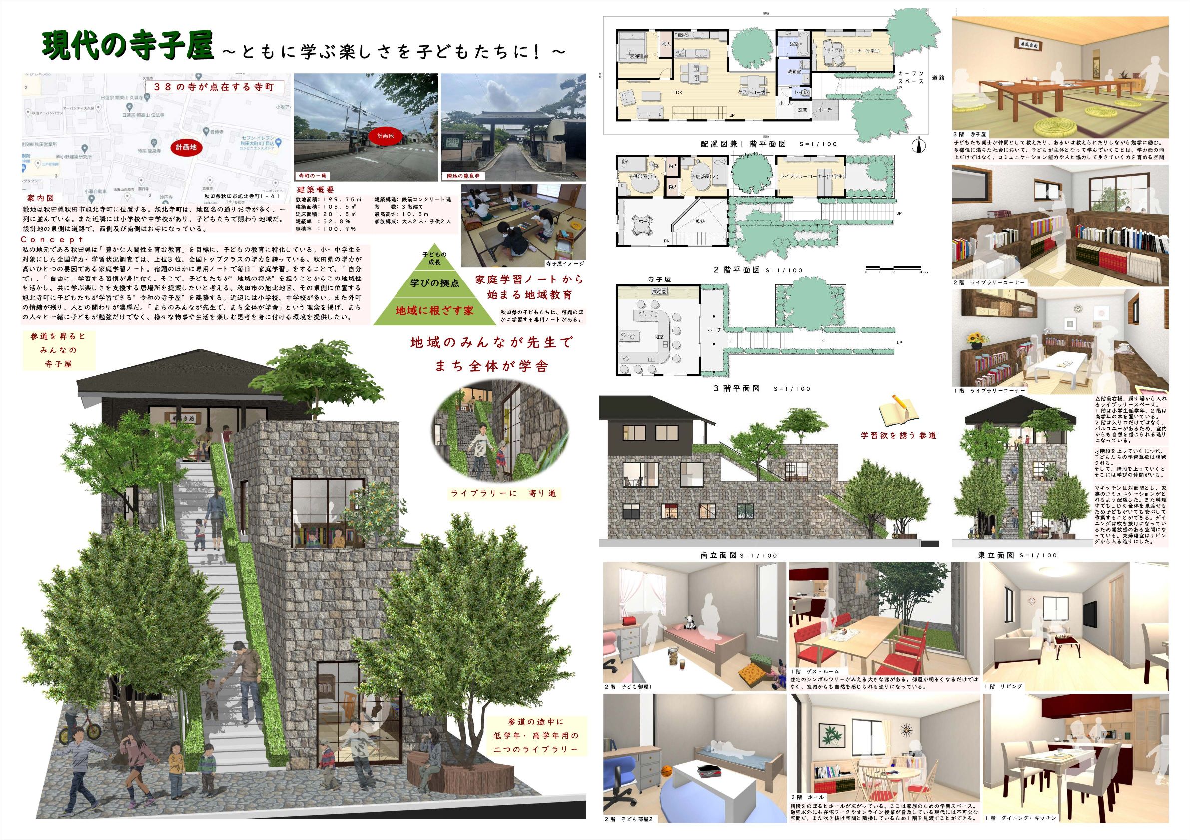 建築環境学科3年生(増田ゼミ)の岸拓未さんと斎藤鈴音さんが、一般社団法人実践教育訓練学会が主催する第6回建築設計競技(テーマ:「地域に根ざす家」)において2等に入賞しました。