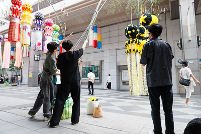 七夕飾り設営の様子