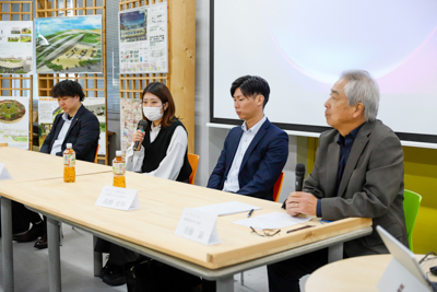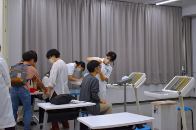 視能訓練士を目指す学生が目の検査を行い、建築環境学科では卒業生を招いてセミナー