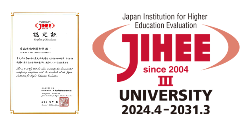 東北文化学園大学は、認証評価機関である公益財団法人日本高等教育評価機構の定める