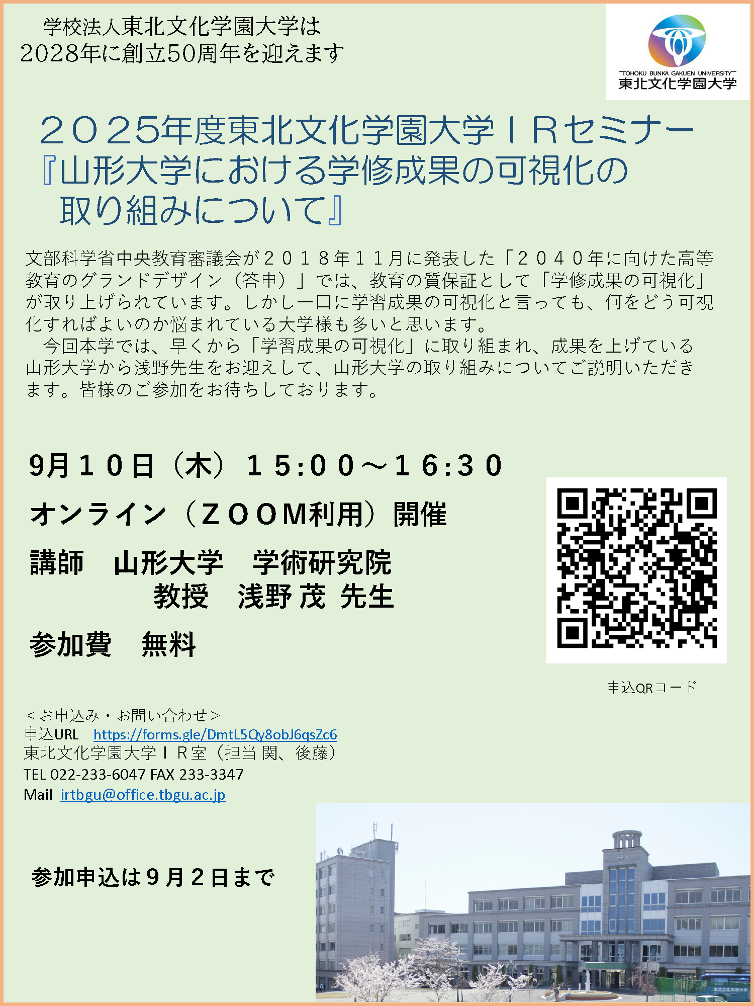 東北文化学園大学では、下記日程にてIRセミナーを開催する予定です。