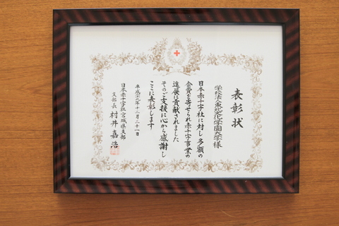 日本赤十字社宮城県支部より表彰状をいただきました。