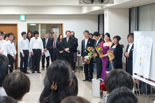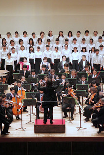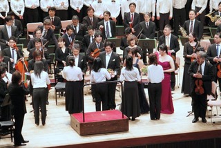 本番のステージには、本学の合唱団43名に加え、東北大学混声合唱団18名、岩手大学合唱団20名、一般の合唱団(仙台宗教音楽合唱団39名、熊友会ヴォーカル・アンサンブル14名、盛岡バッハ・カンタータ・フェライン12名、山響アマデウスコア23名)の総勢172名の合唱団が結成。幅広い協働で第九コンサートが開催されました。本学といたしましては、学習成果の発表であることはもとより、積極的に他大学、合唱団などと連携して文化活動に取り組むことで、地域の振興と発展を図り、ひいては東北地方の復興や地域に住む一人ひとりの心の復興につながることを目指しております。