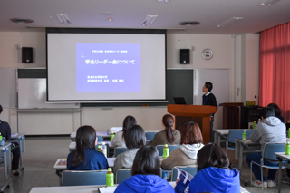 研修後半では、サブトップリーダーを務める佐藤美咲さん(総合政策3年)から「緊張や不安、焦りなど、様々な状況にある新入生に対し、臨機応変に対応していけるよう、スキルだけではなく、私たちのチーム力も上げていかなければならない」との思いをリーダー会全体に伝えました。幹部学生からの激励やグループワーク等のプログラムを通して、リーダー会としての意識を統一することが出来たと思っています。
