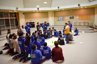 | 学生リーダー会は、毎年4月に秋保温泉「佐勘」で行われる1泊2日の新入生学外研修において、大学と協同して企画から運営に携わるなど、新入生歓迎行事を中心に活動している学友会の団体です。 新入生が少しでも円滑に大学生活をスタートできるよう、新入生同士の「交流」を目的としたレクリエーションや、「団結力」の向上を目的としたグループワークをプログラムに取り入れています。年4回の研修会では講話や演習を通して、組織や団体行動への理解を深めると共にレクリエーションスキルやコミュニケーション力の向上に力を入れています。 |