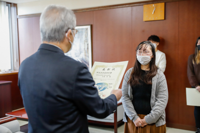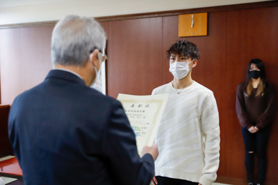2021年12月20日(月)13:00から学長室において「2021年度 前期 学友会会長特別賞」表彰式が開催されました。