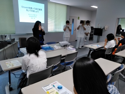 今年度第2回のオープンキャンパスを開催しました。今回は、【中耳炎と関係の深い耳管(鼻とのどをつなぐ管)のしくみ:閉じた耳管を自分で開く方法をオトヴェントを使って体験する】【心理学の検査にふれてみよう!】というタイトルで模擬授業が行われました。楽しんでいただけましたでしょうか。