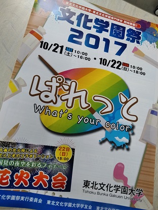 去る10月21日から22日にかけて、東北文化学園大学学園祭・オープンキャンパスが開催されました。天気が崩れがちな中、大勢の方々にお越しいただくことができ、一同心から感謝しております。