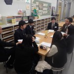 模擬授業では3年生の先輩方が全体に向け自己紹介をした後、講義を��いました。