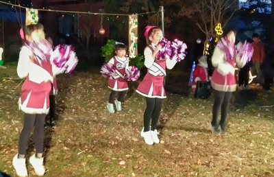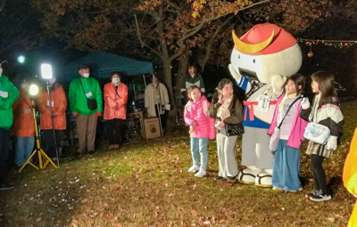 今年度も折立小学校・中学校・保育所・幼稚園の子どもたちが思い思いにデザインしたペットボトルランタンが折立公園の遊歩道を彩り、また、イルミネーション点灯に先駆けて、現在折立地域で大活躍中の「おりたてZ世代プロジェクト」の中学生企画員が運営するワークショップ“キーワードラリー”“スノードーム作り”そして“ランタンツリーお絵かき”の企画も実施されました。特に“ランタンツリーお絵かき”で参加した子供たちが丹精込めて作成した作品は、16時30分の催事開始と同時に点灯され、催事の一端を担いました。例年行われる仮設ステージでのパフォーマンスには地元の「Rosettes」の皆さんによるキッズチアダンス、折立小学校教員によるミニコンサートも開催され、併せて仙台・宮城観光PRキャラクター “むすび丸”も来場して「むすび丸とふれあいタイム」コーナーも人気を博し、地域住民共々初冬の夕べのひと時を過ごすことで、新たな出会いを演出しました。