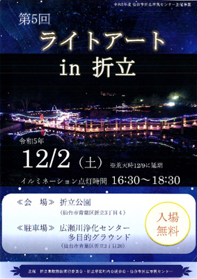 去る12月2日(土)、仙台市西部の折立・西花苑団地を中心とした地域で、“ライトアートin折立”というイベントが開催され、本学の“探求・理解プロジェクト”の「地域活動・ボランティア」(1年次配当)と「ボランティア探求」(2年次配当)の受講生他7名がボランティアスタッフとして参加しました。