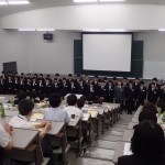 北海道から関東方面、新潟等、約40の病院施設の指導者の先生に参加して頂きました。指導者の先生と学生との面談では、学生は「どのような疾患の患者様が多いのか」、「どのような評価を勉強していけばよいのか」などの確認をしていました。臨床実習Ⅱは3年生を対象に10月から開始され、臨床実習Ⅰは来年2月から開始されます。今回の指導者会議では前身の専門学校の卒業生や大学の卒業生の方の参加も見受けられました。