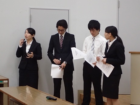 本専攻では、作業療法実践特論と作業療法研究特論という選択必修科目で卒業研究に取り組んでおります。9月28日(水)にその成果発表会を行いました。専攻教員の指導の下、4、5人のグループで一つのテーマについて研究します。実践特論では、臨床的な調査研究を主に行い、研究特論では実験研究を行っています。今年取り上げられたテーマは、台湾の高齢者を対象とした折り紙の作業活動としての利用の可能性を調査したものや、認知症高齢者の介護者に介護負担をインタビューしたもの、箸動作の最適な練習量を実験から考察したもの、アロマの効用を記憶課題を用いて実験したものなど全部で10テーマありました。
