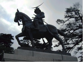 写真は,仙台市青葉山の仙台城(青葉城)跡に建立された伊達政宗像です.四百年の時を超え,時代とともに変わる仙台のまちを,政宗公はどのような気持ちで城跡から眺めているのでしょうか? 政宗公の独眼に,いまの仙台はどのように映っているのでしょうか?(写真が不鮮明ですみません)