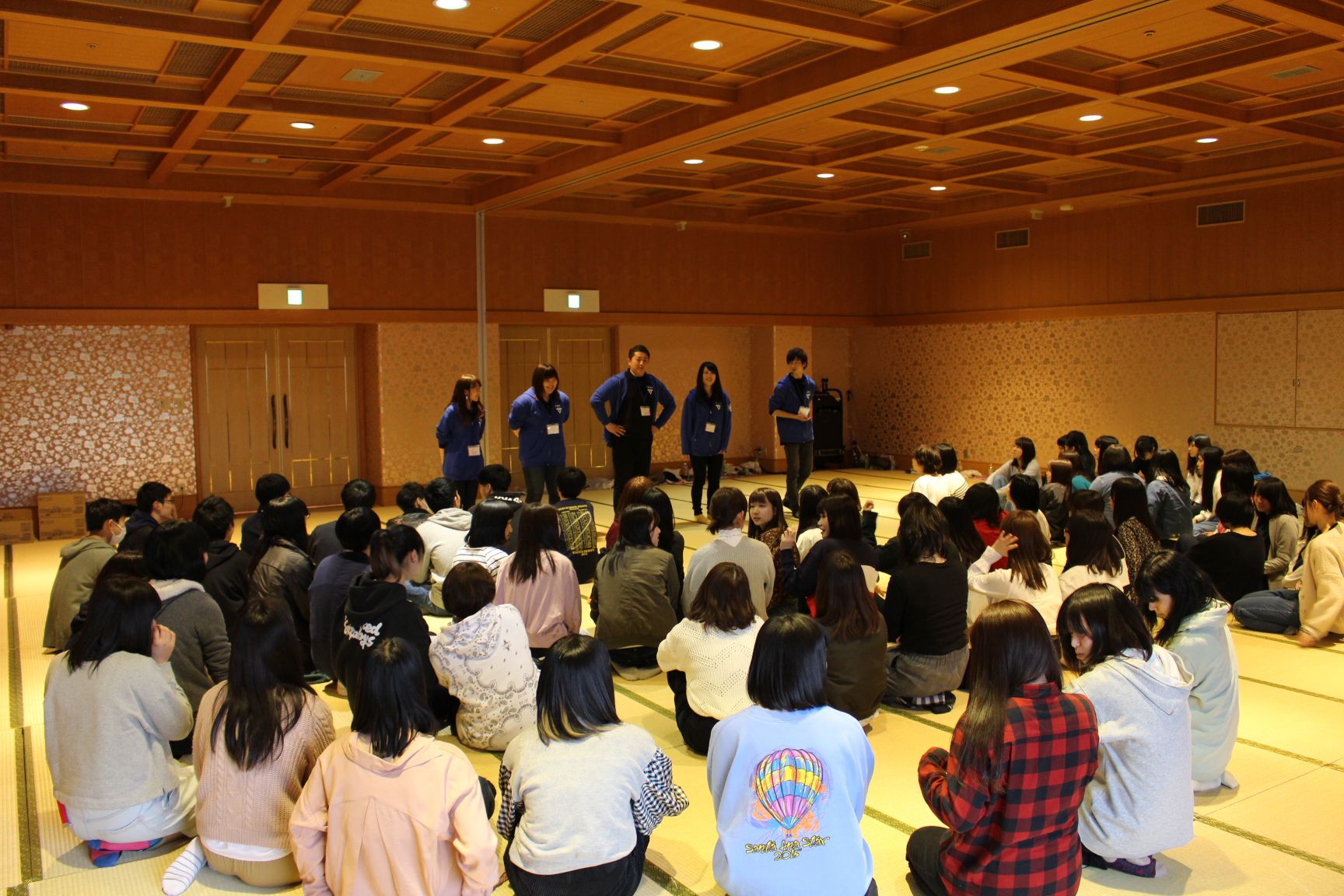 秋生温泉旅館で1泊2日の新入生学外研修が行われ、先輩や新入生同士で交流を深める様子がみられました。