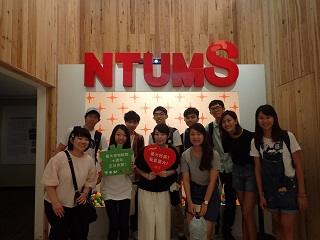 (NTUMS前で。台湾大学ヒストリーギャラリーの1コーナーでの写真です.プラカードには「I Love NTU(台湾大学の略称)」と書かれています.)