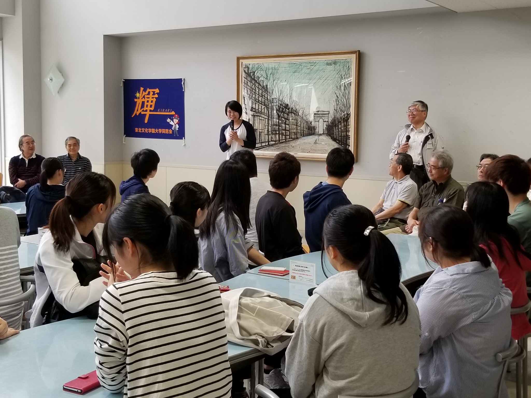 ※写真は看護学科の学生が、出発前に学生代表の挨拶をしている場面です。