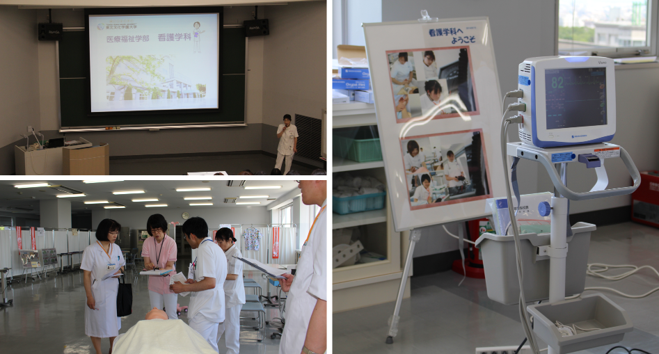 看護学科では、実際に講義でも使用する演習機器の体験や、